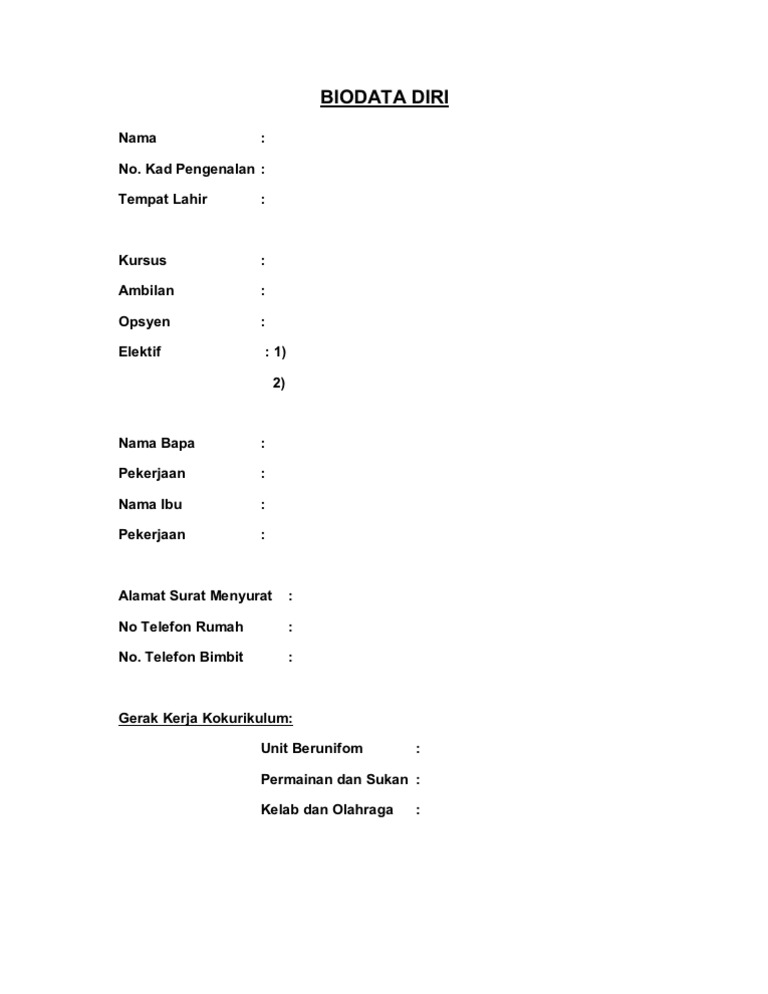 Contoh Soalan Biodata Written By Will Sunday, June 19, 2022 Add Comment Edit Pin On Eyang Salim Contoh Biodata Guru Contoh Biodata Diri Pelajar Caseydsx Contoh Contoh Soalan Ujian Kelayakan Sekolah Berasrama Penuh Uksbp1 Sekolah Asrama Steve Jobs Biodata Diri Pdf Share this post